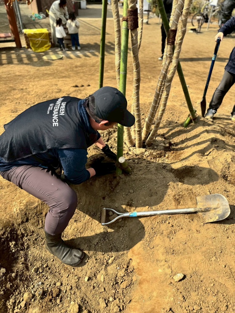 翌日の2026年2月14日には、公園改修の関係者や来園者の皆様にお集まりいただき、高木の「植樹式」が執り行われました。