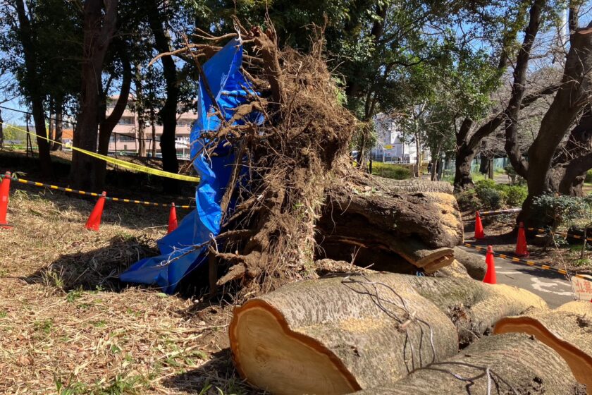 東京都世田谷区砧公園のサクラ倒木(根返りを伴う倒伏)について 樹木医の考察