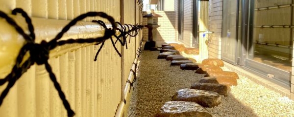 見た目の人工感を無くすために、伊勢ゴロタ石を置きました。