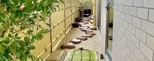 バルコニーの茶庭作庭の植栽工事を行いました。