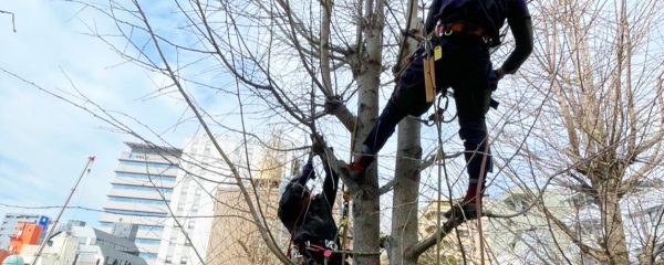 ツリークライミングロープワークの技術で樹木にアクセスし剪定を行いました。