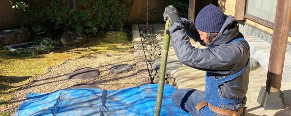 春が訪れを感じる陽気の中、例年手入れ作業でお伺いさせていただいているお庭の土壌改良をおこないました。