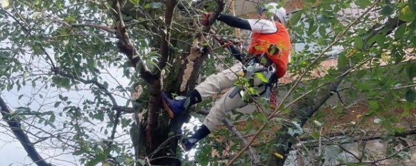 ロープワーク(ツリークライミング)での診断作業中も