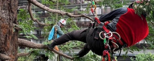 ツリークライミング・ロープワークで剪定を行いました。