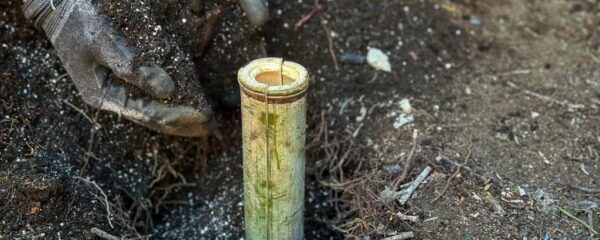 根を地中深くまで伸長させる為に割竹挿入土壌改良を施しながら、