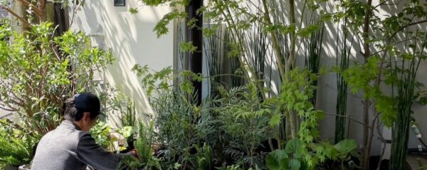 今回は日陰の環境に合う植栽を配置しながら、低木、地被植物でも高さのリズムや葉のテクスチャーの違いも楽しめるものを選び、提案させていただきました。