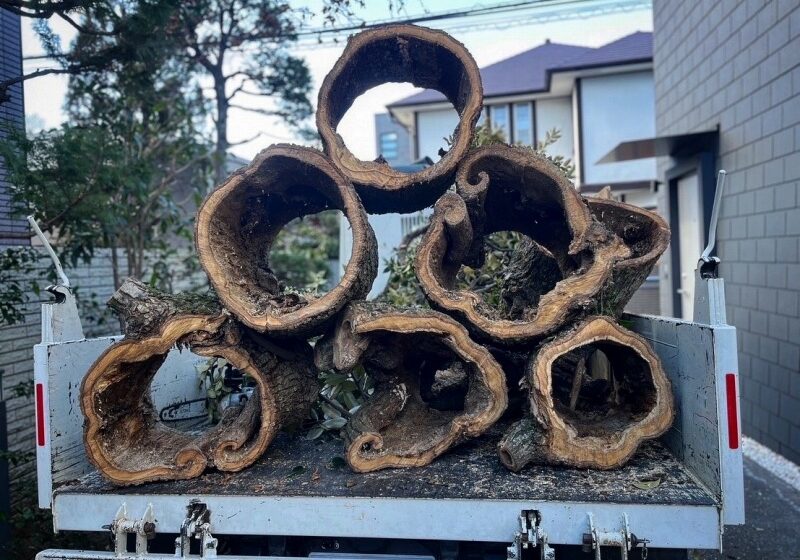 伐採後の一部は庭の景観資材として再利用されることになりました。